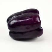 表面はピーマンには珍しい紫色、果肉は薄黄緑色をしたピーマンです。
