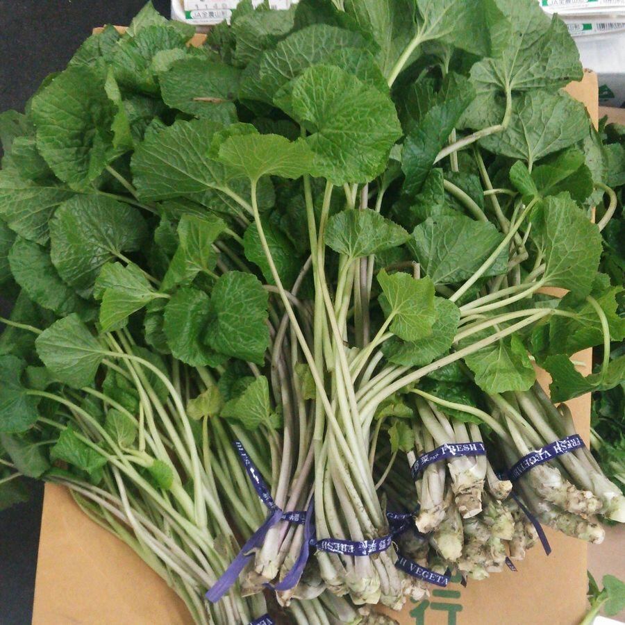 根っこにわさびがついている葉わさび。